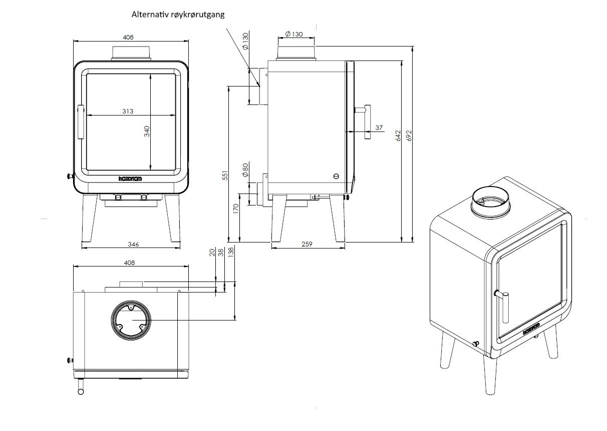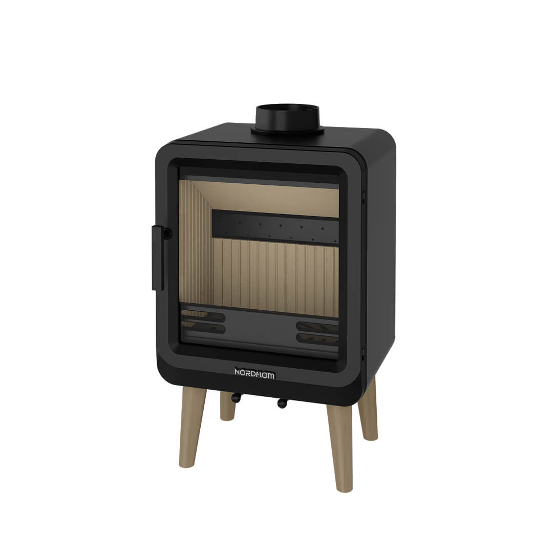 NORDflam Flåm er en kompakt og effektiv peisovn i støpejern og stål, utviklet for rom og boliger med lavere varmebehov. Med 5 kW nominell effekt gir ovnen behagelig og jevn varme uten risiko for overoppheting, og egner seg perfekt som hovedvarme i mindre boliger eller som tilleggsvarme i større oppholdsrom.